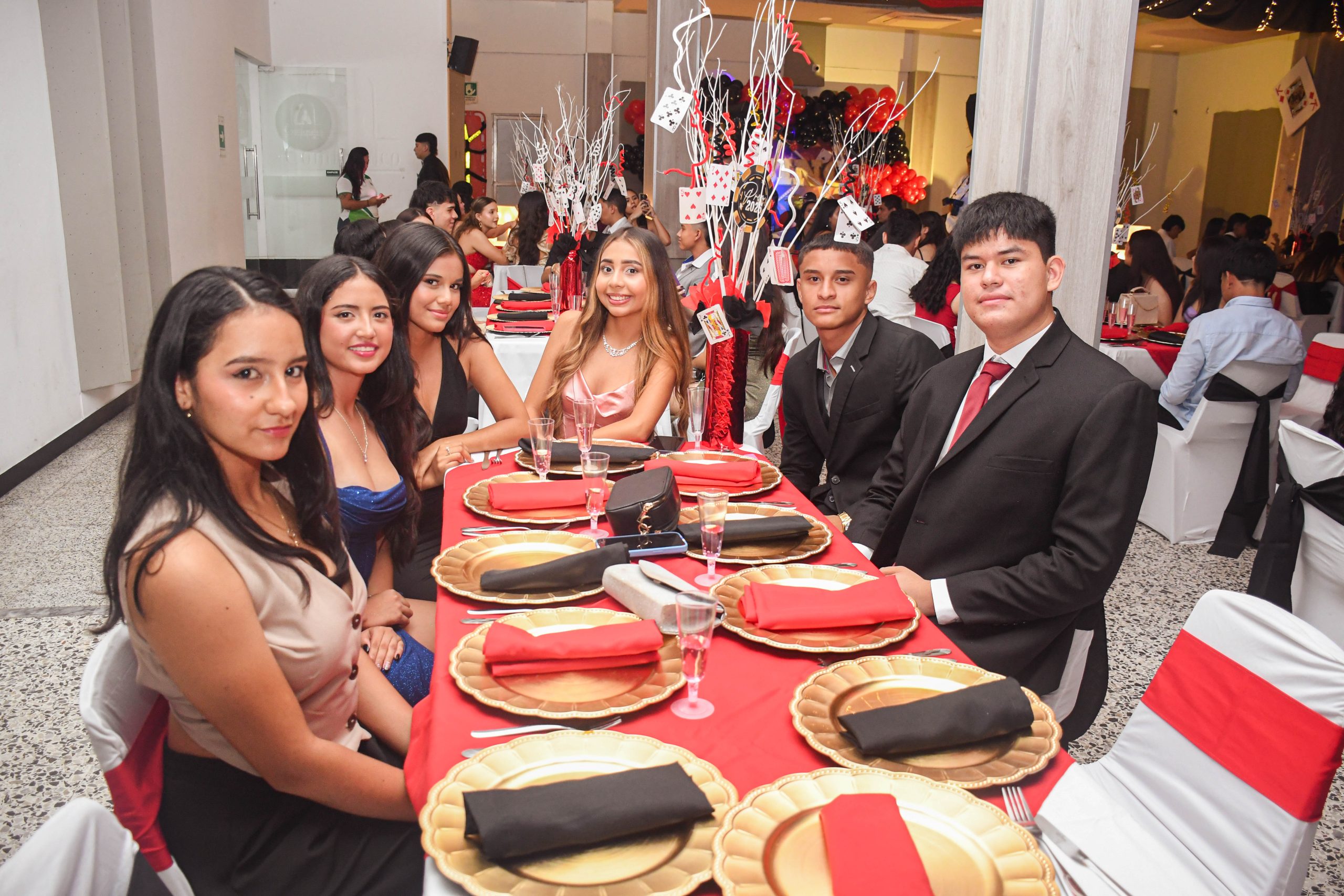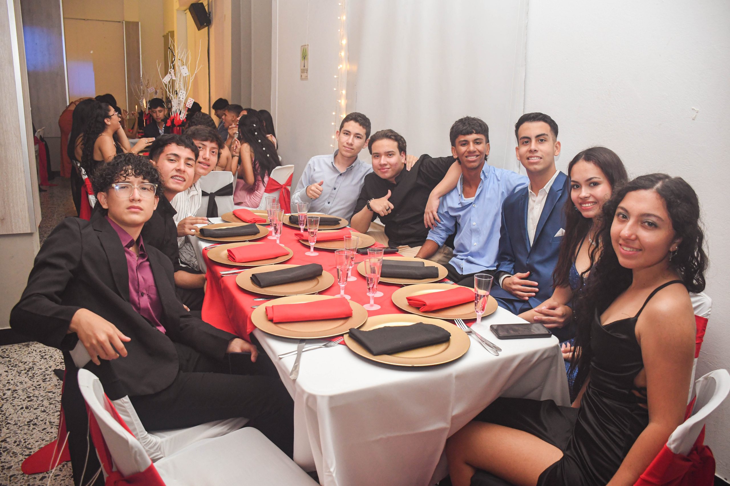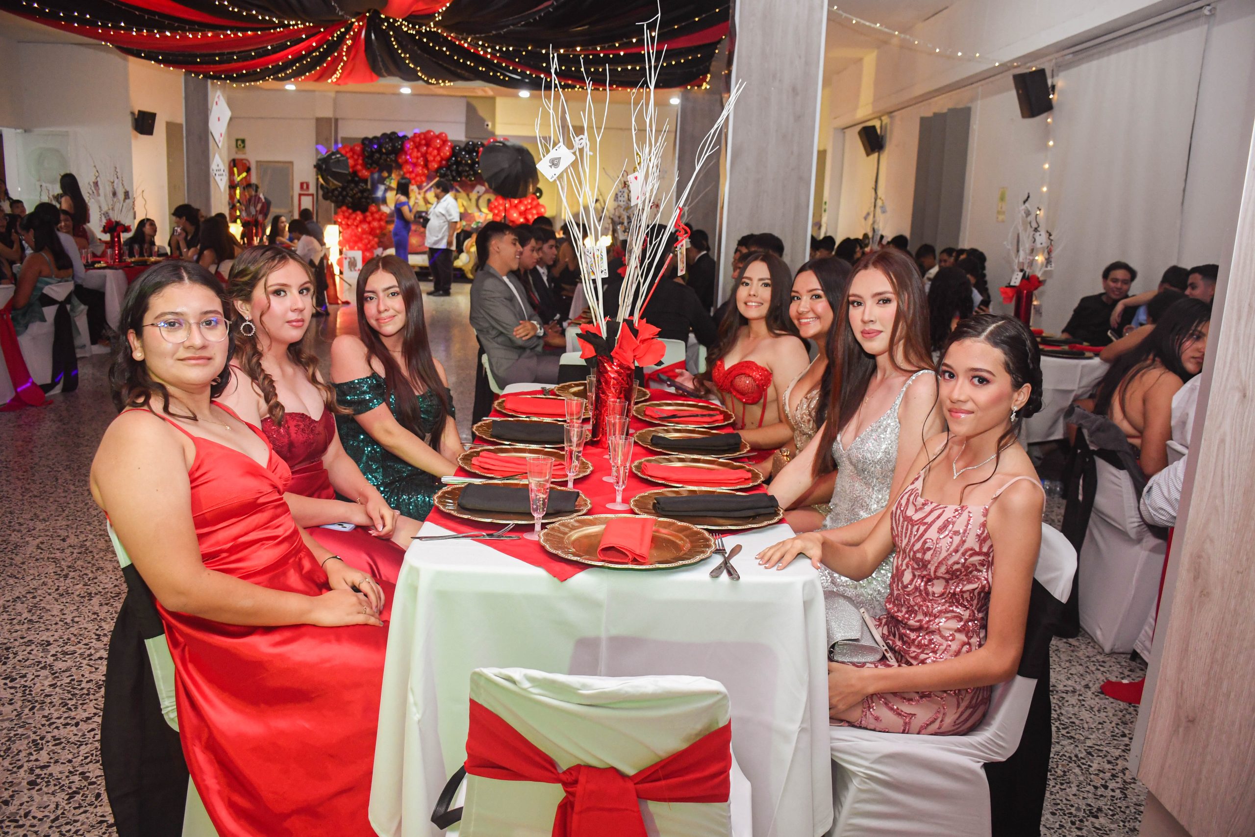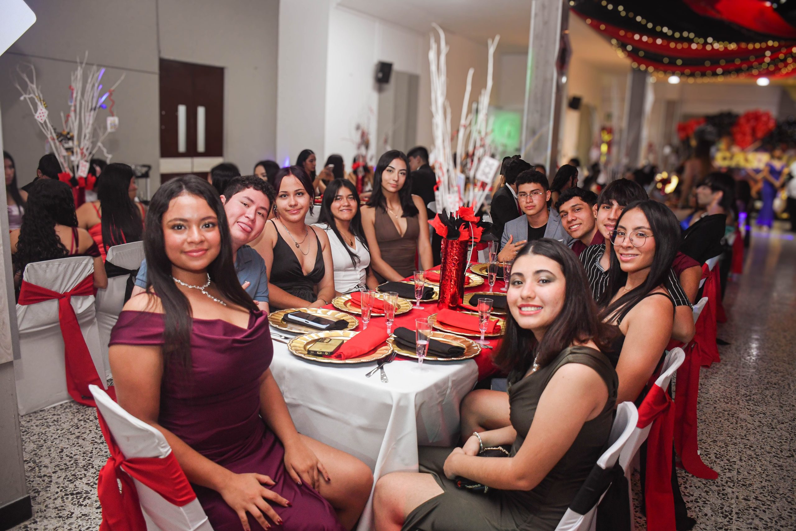 Una noche de gala, compartiendo, celebrando, riendo y bailando juntos en un ambiente lleno de alegría y amistad.